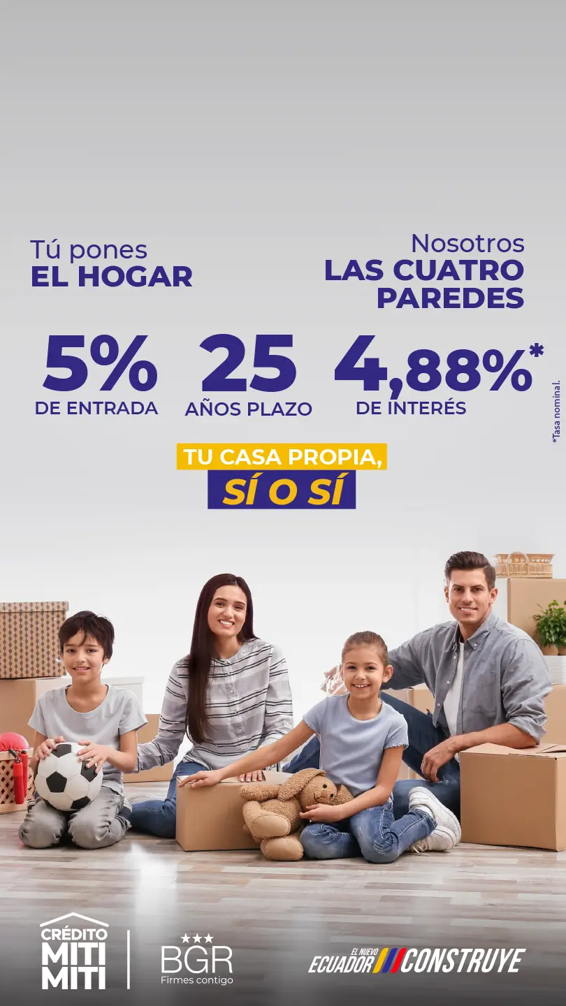 Crédito hipotecario destinado para que puedas adquirir tu primera casa con una tasa de interés preferencial del 4.88%.